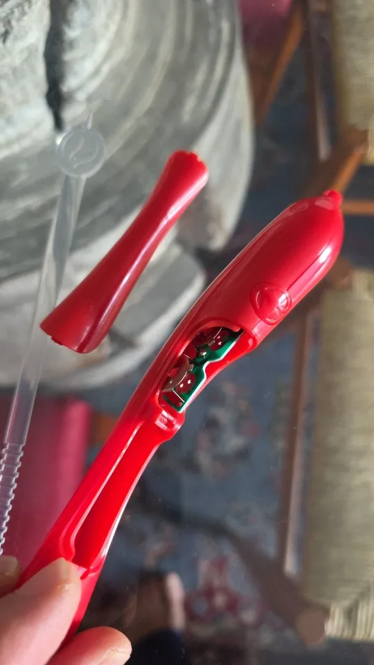 Super fast, comes without batteries, 2 small LR44 button batteries, works well, but the tank is not very reliable and one falls out through the nozzle.